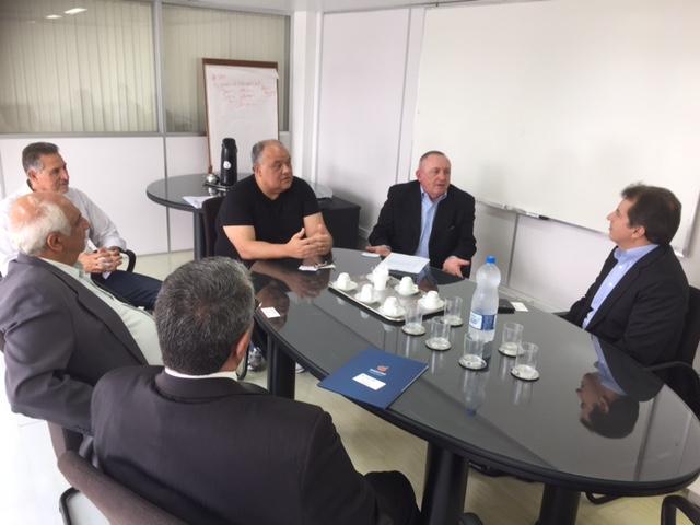 O presidente do Instituto de Pesos e Medidas do Paraná, Oliveira Filho, recebeu hoje (23) o presidente da Federação Nacional das Distribuidoras de Combustíveis, Gás Natural e Biocombustíveis Maurício Chicre Abou-Rejaile, o presidente do Sindicombustíveis do Paraná Rui Cichella, e o diretor Administrativo Orlando Dallabona, o consultor Regional do Sindicado Nacional das Distribuidoras de Combustíveis e Lubrificantes Carlos Trindade, e o representante da Ipiranga Vagner Calvetti.