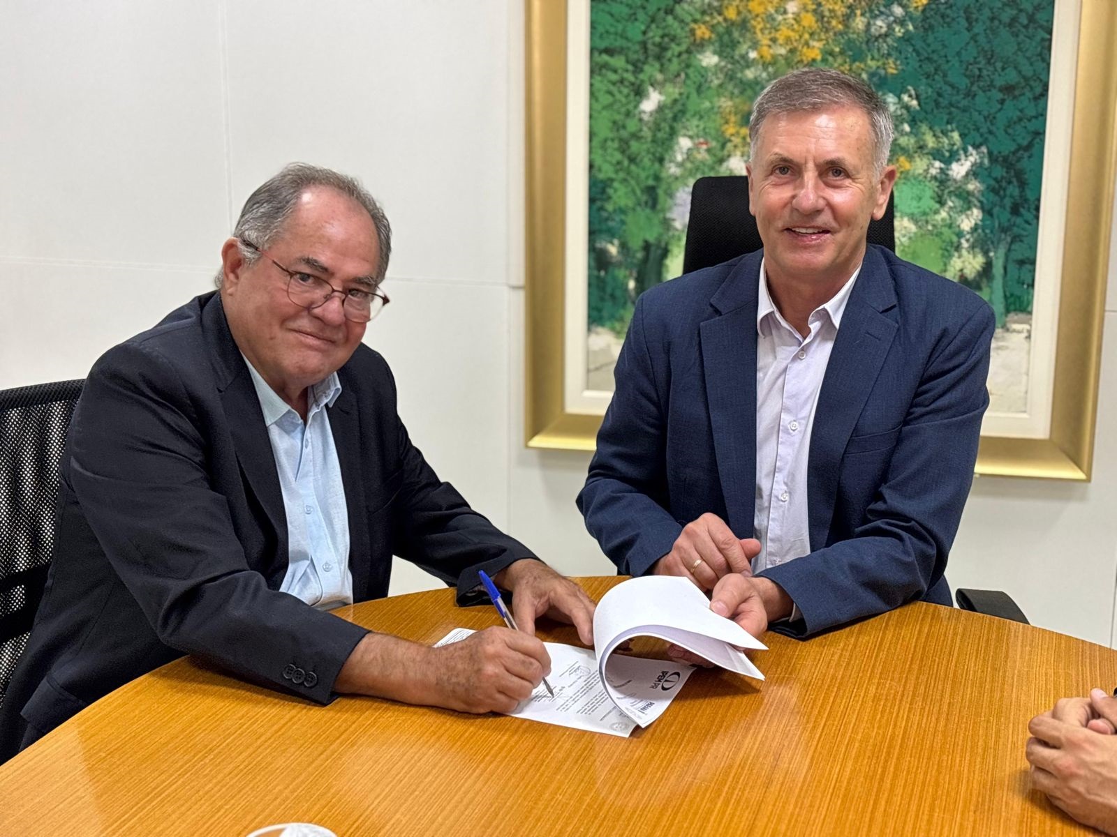 O ato formal reuniu o presidente do IPEM-PR, Rubens de Camargo Penteado, o diretor técnico do órgão, Gabriel Perazza, e o secretário de Estado da Administração e da Previdência, Luiz Goularte Alves.